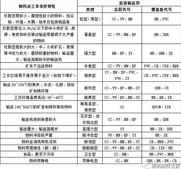 3.2.輸送帶類型及適應(yīng)工作條件:(見下表)